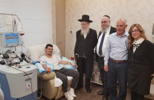 Deputy Minister Yaakov Litzman marked the opening of the Stem Cell Harvesting Center together with Chananya Chollak, Ezer Mizion’s International Chairman; Bracha Zisser, Director of Ezer Mizion’s International Bone Marrow Donor Registry; and Professor Yitzchak Yaniv, Medical Director of the Registry. In the course of a tour of the Center, they met Shaked Avitan, who was in the midst of a stem cell donation process. Avitan told them: “The minute they call, you say ‘yes.’ When someone needs you and you can save a life, you don’t think twice.”
